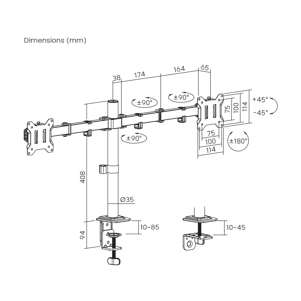 | Suggested Desktop Thickness: | Clamp:10~85mm Grommet:10~45mm |