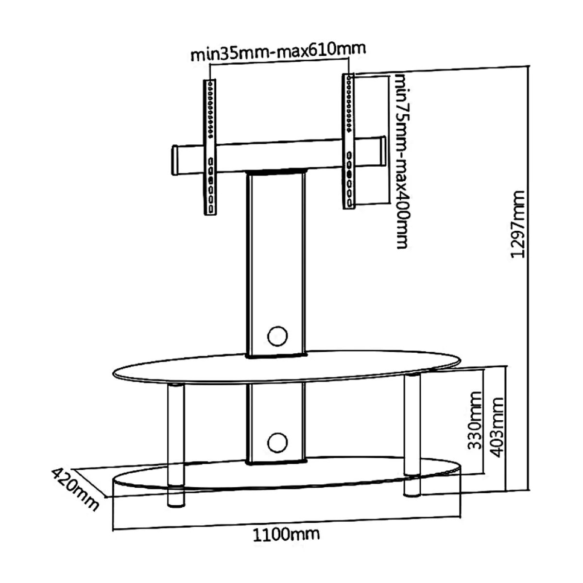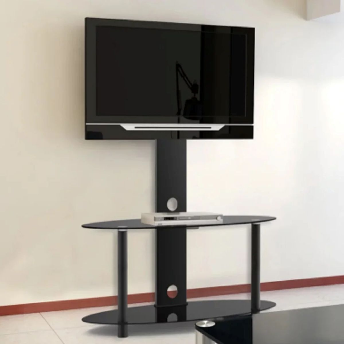 Floor Stands, Floor, Stands, Floor Stands in uae, Floor Stands in dubai, Best Floor Stands, 2-Tier Oval Black Glass Media Console With Swivel TV Mount Bracket