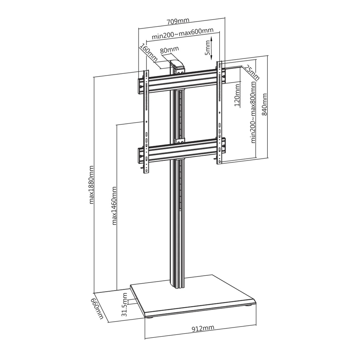 Supports most 60" to 100" screens with a maximum VESA of 600x800mm and a weight capacity of 150kg (330lbs)—ideal for large-format displays.