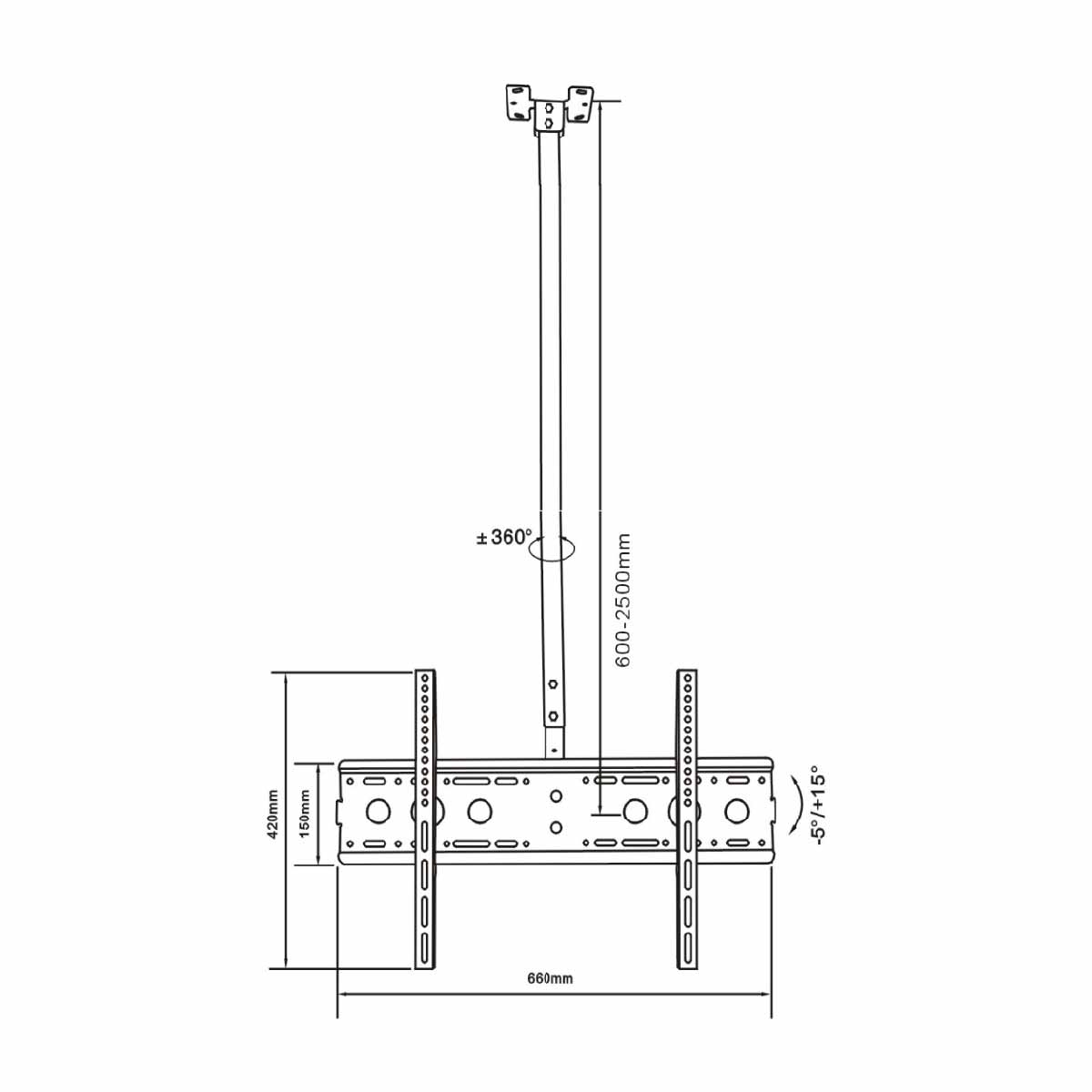 The SH CB04 TV Ceiling Mount is an economical yet durable solution for mounting 32"–70" flat or curved TVs. Crafted from sturdy steel with a fine texture black powder-coated finish, it supports up to 30kg with VESA compatibility up to 600x400mm. Featuring adjustable drop height (600mm–2500mm), +15°~-5° tilt, detachable panel, and integrated cable management, this ceiling mount offers flexibility, space-saving design, and easy installation.