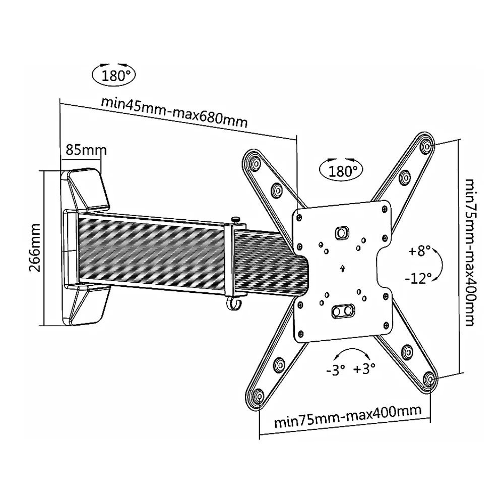 Space-Saving Slim Profile – Extends from just 45~680mm, ideal for low-profile or extended viewing setups.