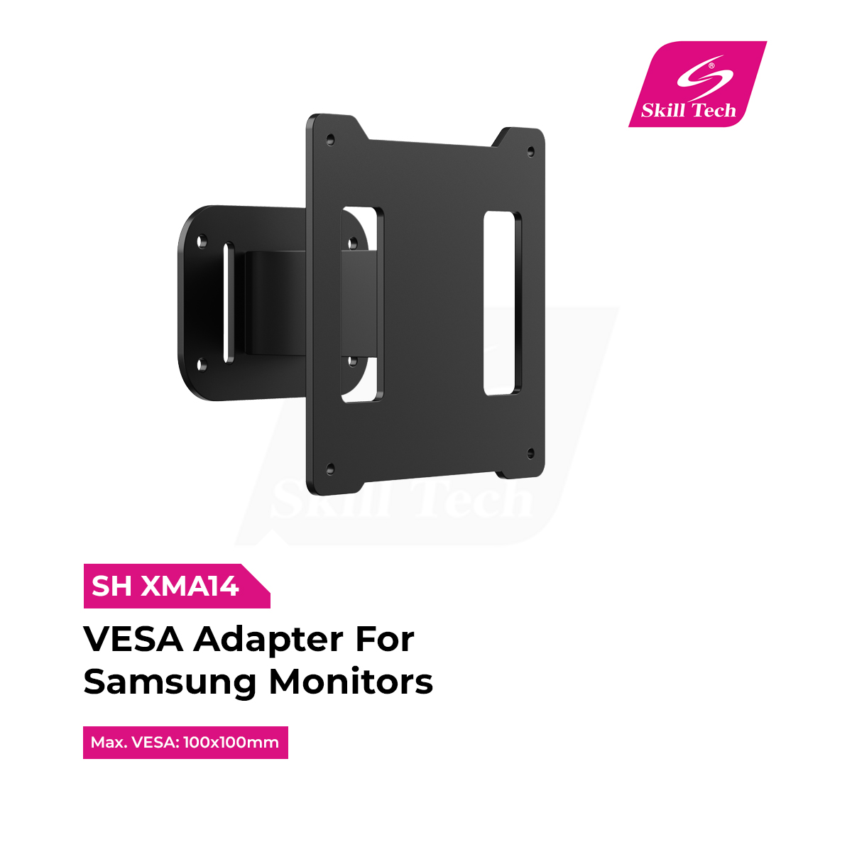 The SH XMA14 VESA Adapter for Samsung Monitors is a reliable mounting solution designed to ensure compatibility with standard monitor arms. Made from durable steel with a powder-coated finish, it supports VESA patterns up to 100×100mm. Available in matte black or white, this adapter provides a secure fit, easy installation, and long-lasting performance, making it ideal for home, office, and professional workstation setups.