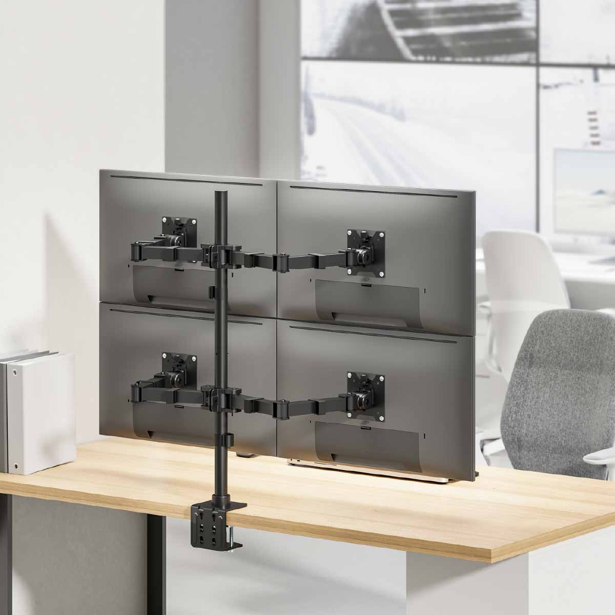 Quad-Screen Support – Holds up to four 17″–35″ monitors, each weighing up to 15kg (33lbs).
