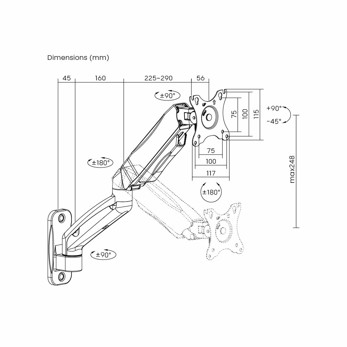 | Arm Full Extension: | 450mm (17.7") |