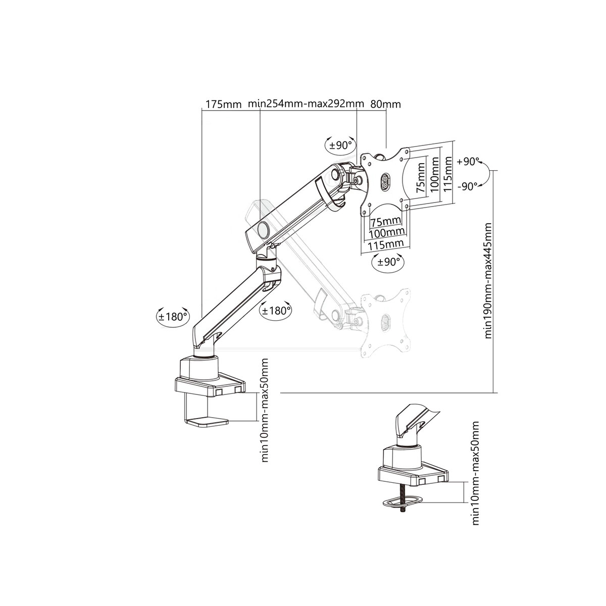 | Suggested Desktop Thickness: | Clamp 10~50mm Grommet 10~50mm (Clamp 0.39"~2" Grommet 0.39"~2") |
