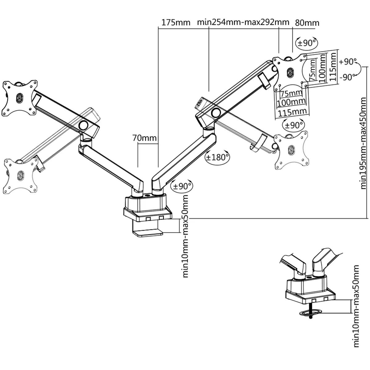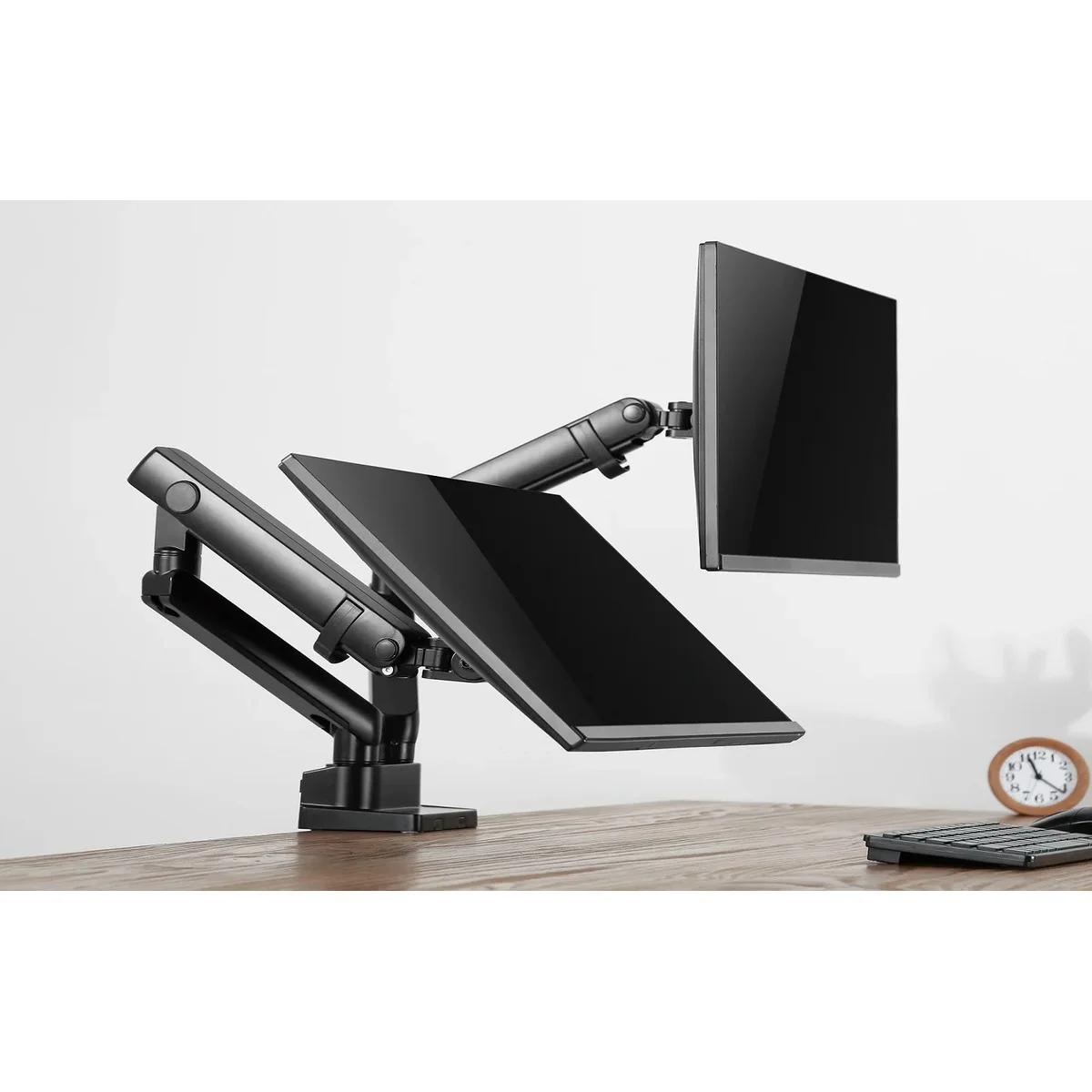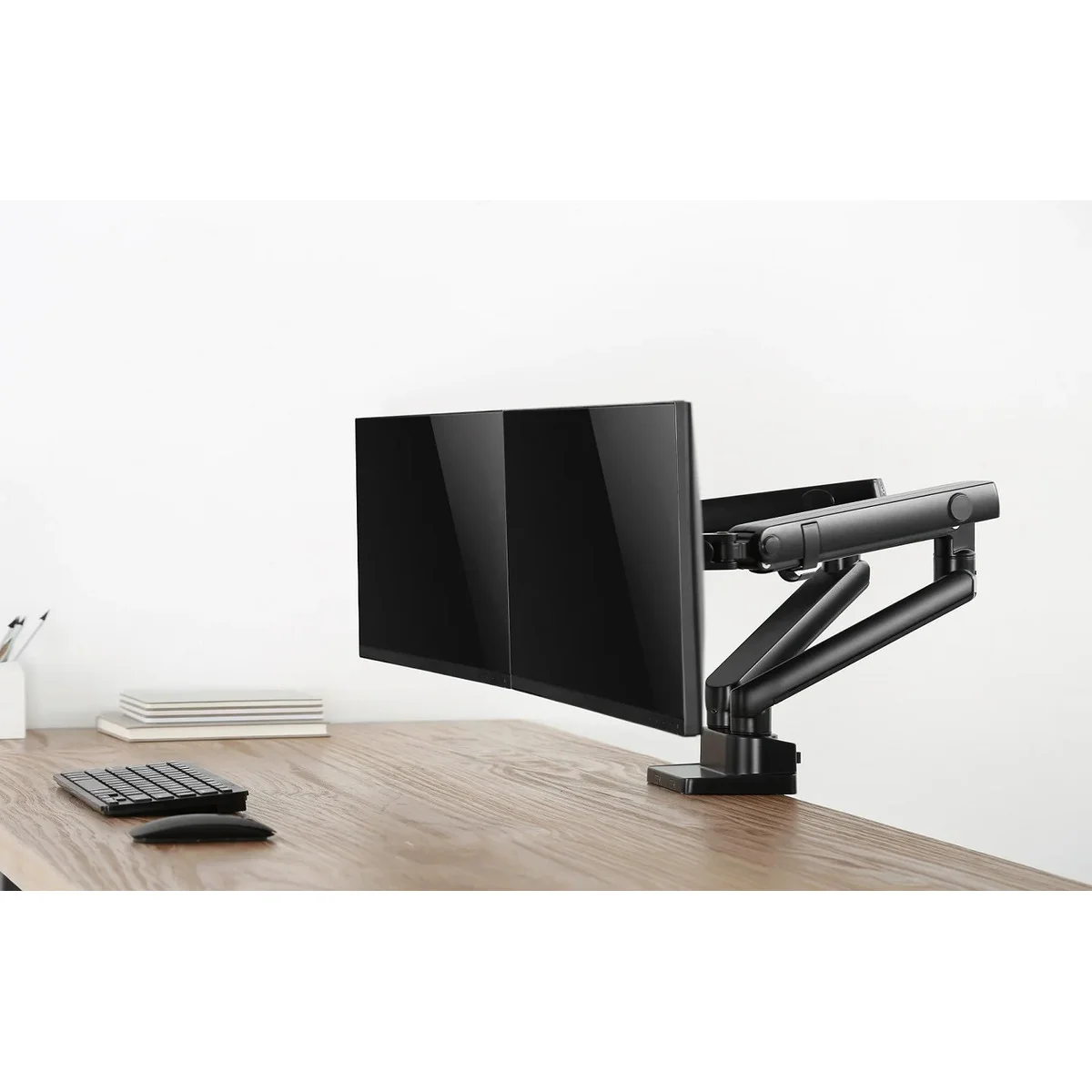 Ergonomic Mounts, Ergonomic, Mounts, Gas Spring Monitor Arm, Monitor Arm, Gas Spring Monitor Arm in uae, Gas Spring Monitor Arm in dubai, Best Gas Spring Monitor Arm, Aluminium Slim Pole-Mounted Spring-Assited Dual Monitor Mount