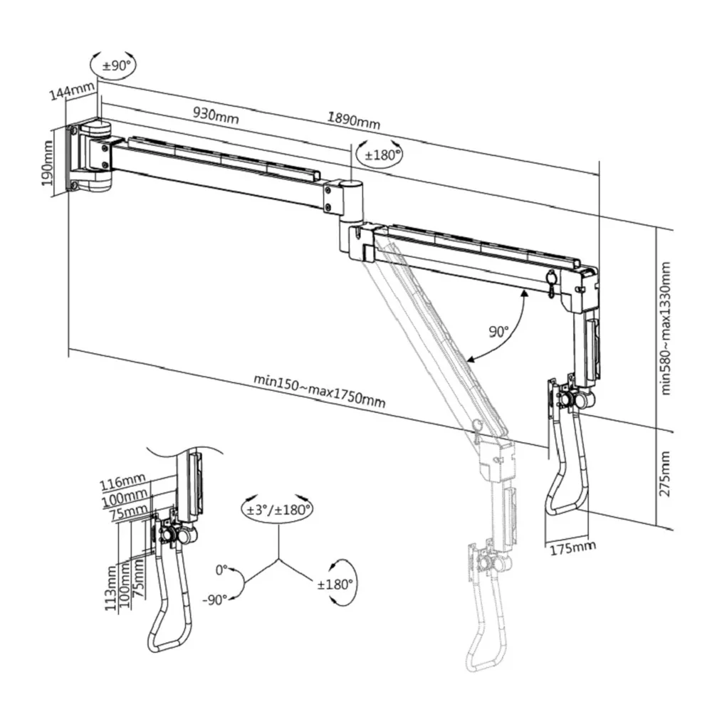 Extra Long Extension – Impressive 1780mm (70.1") arm reach allows maximum flexibility and positioning across wide workspaces.