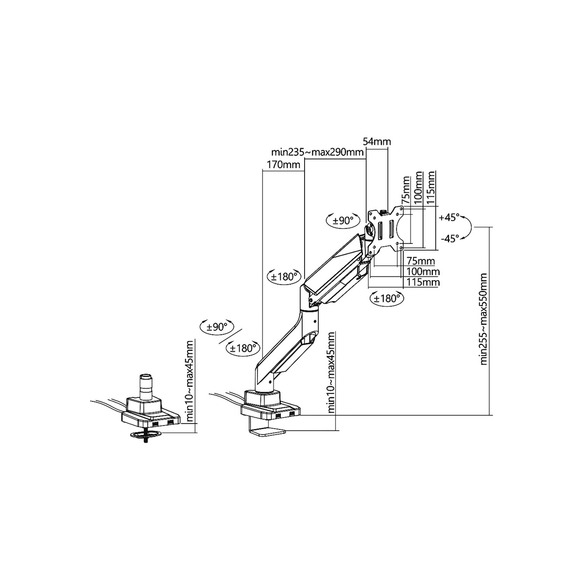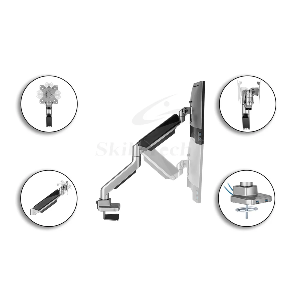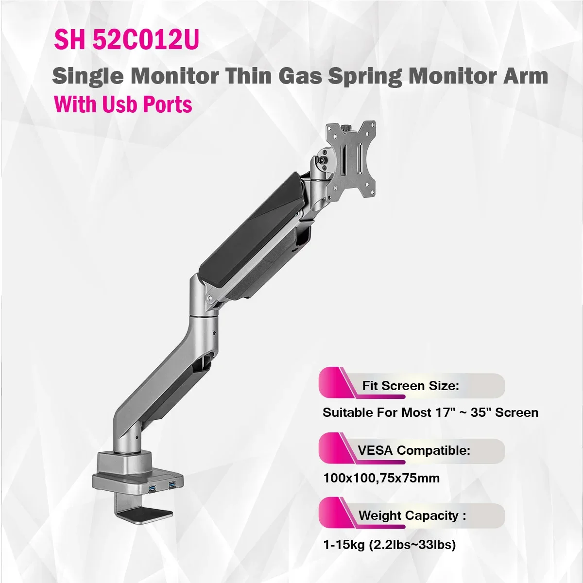 Ergonomic Mounts, Ergonomic, Mounts, Gas Spring Monitor Arm, Monitor Arm, Gas Spring Monitor Arm in uae, Gas Spring Monitor Arm in dubai, Best Gas Spring Monitor Arm, Single Monitor Thin Gas Spring Monitor Arm With Usb Ports