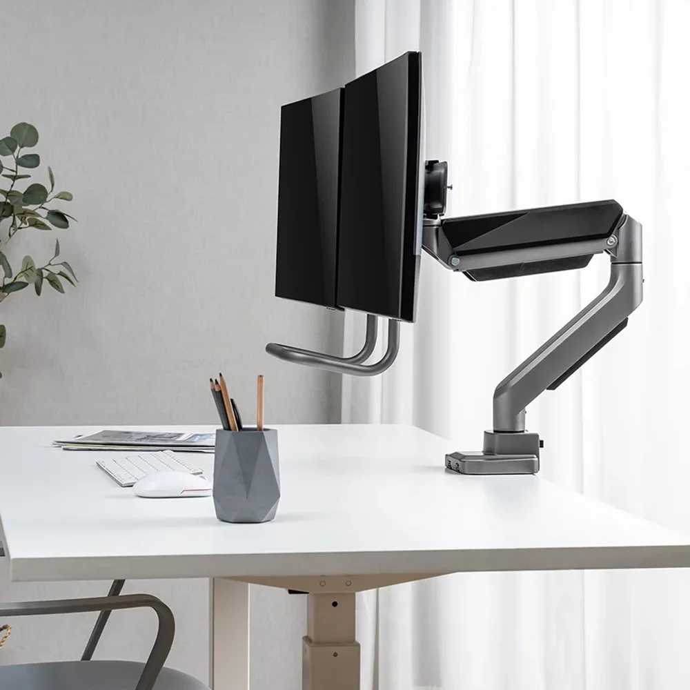 Ergonomic Mounts, Ergonomic, Mounts, Gas Spring Monitor Arm, Monitor Arm, Gas Spring Monitor Arm in uae, Gas Spring Monitor Arm in dubai, Best Gas Spring Monitor Arm, Dual Monitors Premium Space-Saving Monitor Arm With USB Ports
