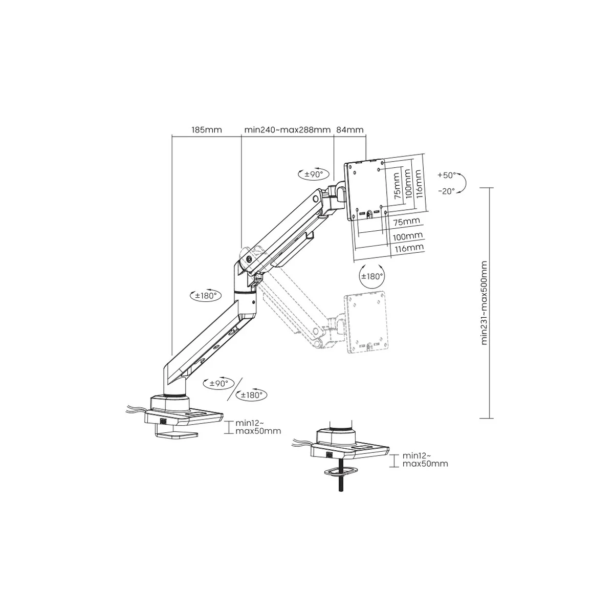 Suggested Desktop Thickness: | Clamp:12~50mm Grommet:12~50mm (Clamp:0.47"~2" Grommet:0.47"~2") |