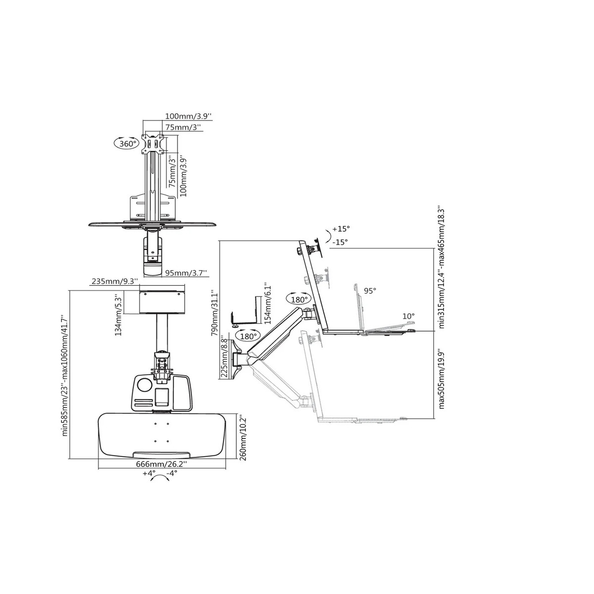 Ergonomic Height Adjustment: Manual lift offers up to 505mm of vertical movement for a comfortable working posture.