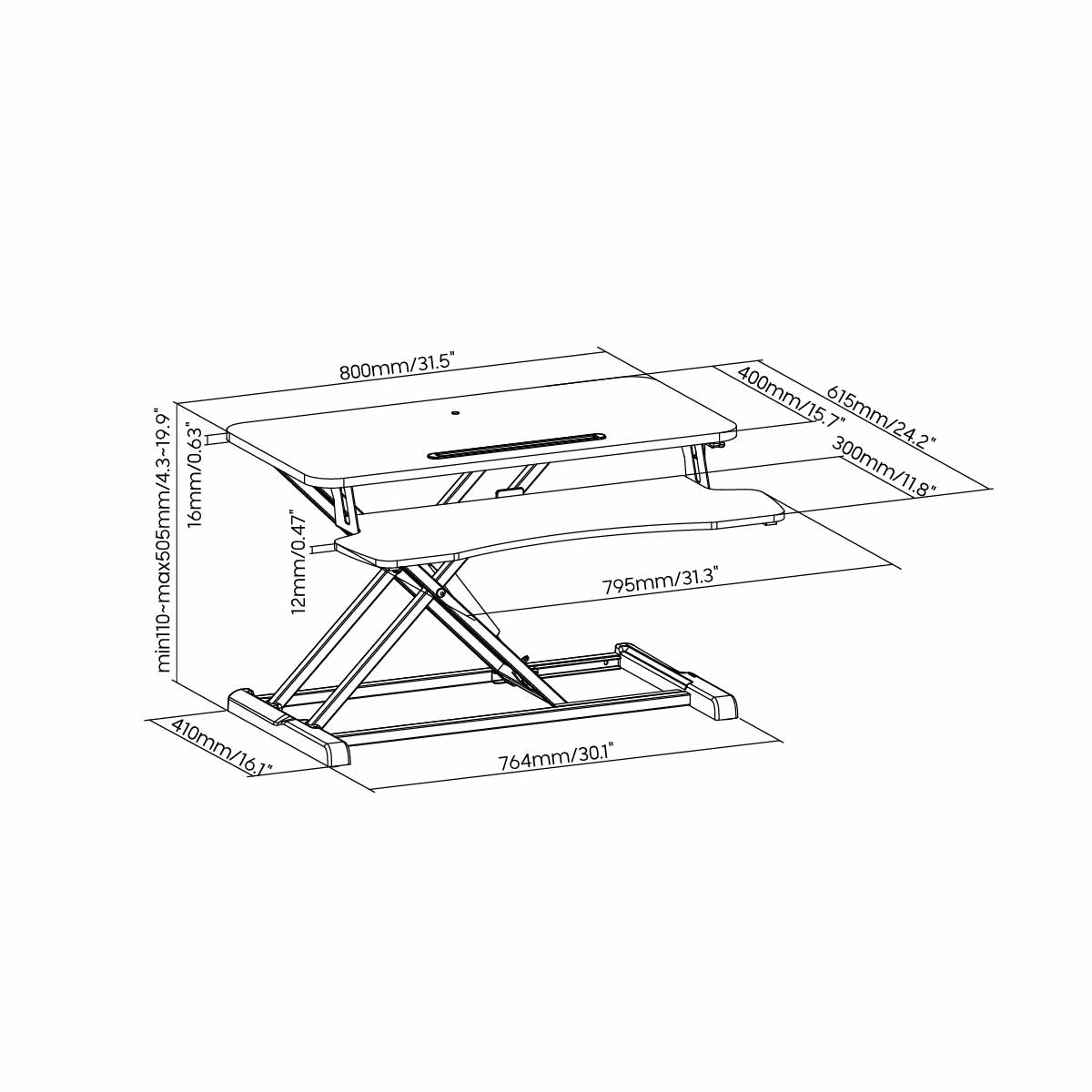 | Dimensions: | 800x615x110~505mm (31.5"x24.2"x4.3"~19.9") |