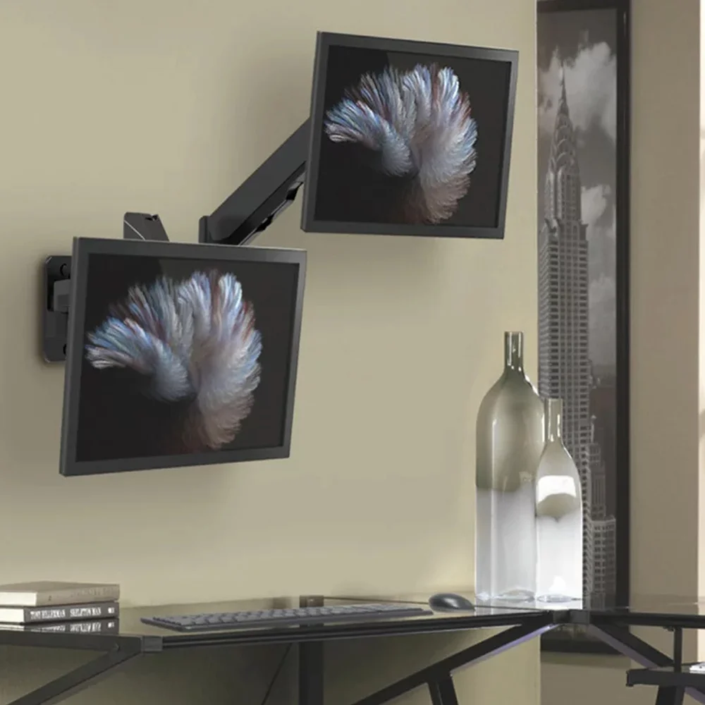 Wall-Mounted Design: Saves desk space while supporting dual monitors for a clean and organized setup.