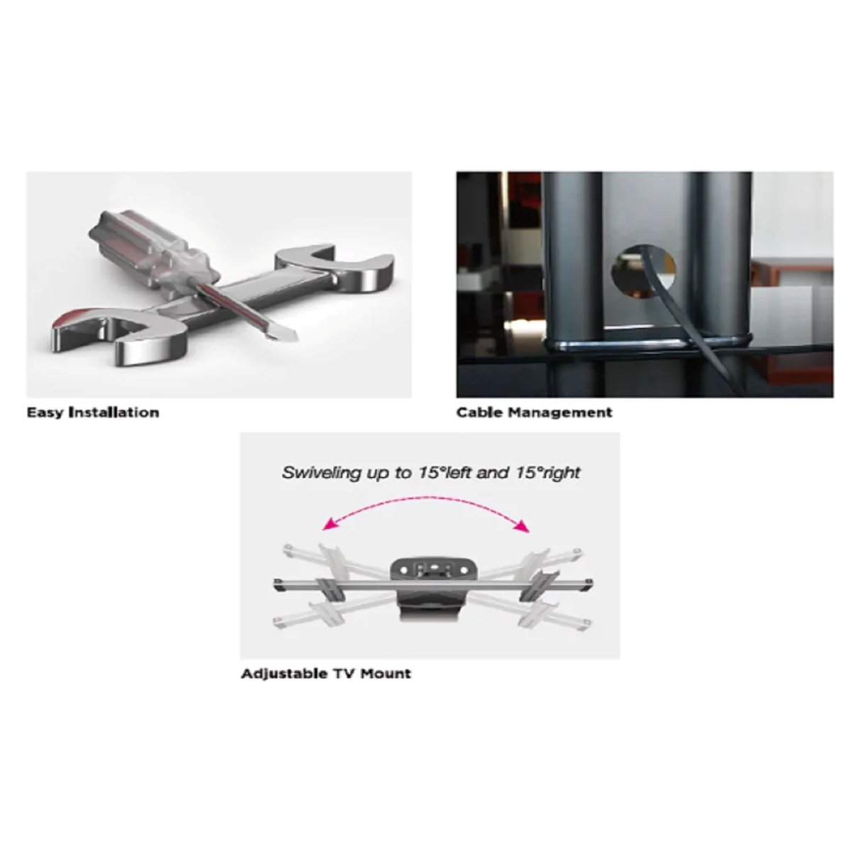 Three-Tier Storage – Provides ample space for AV components with 8/5/5mm thick glass shelves.