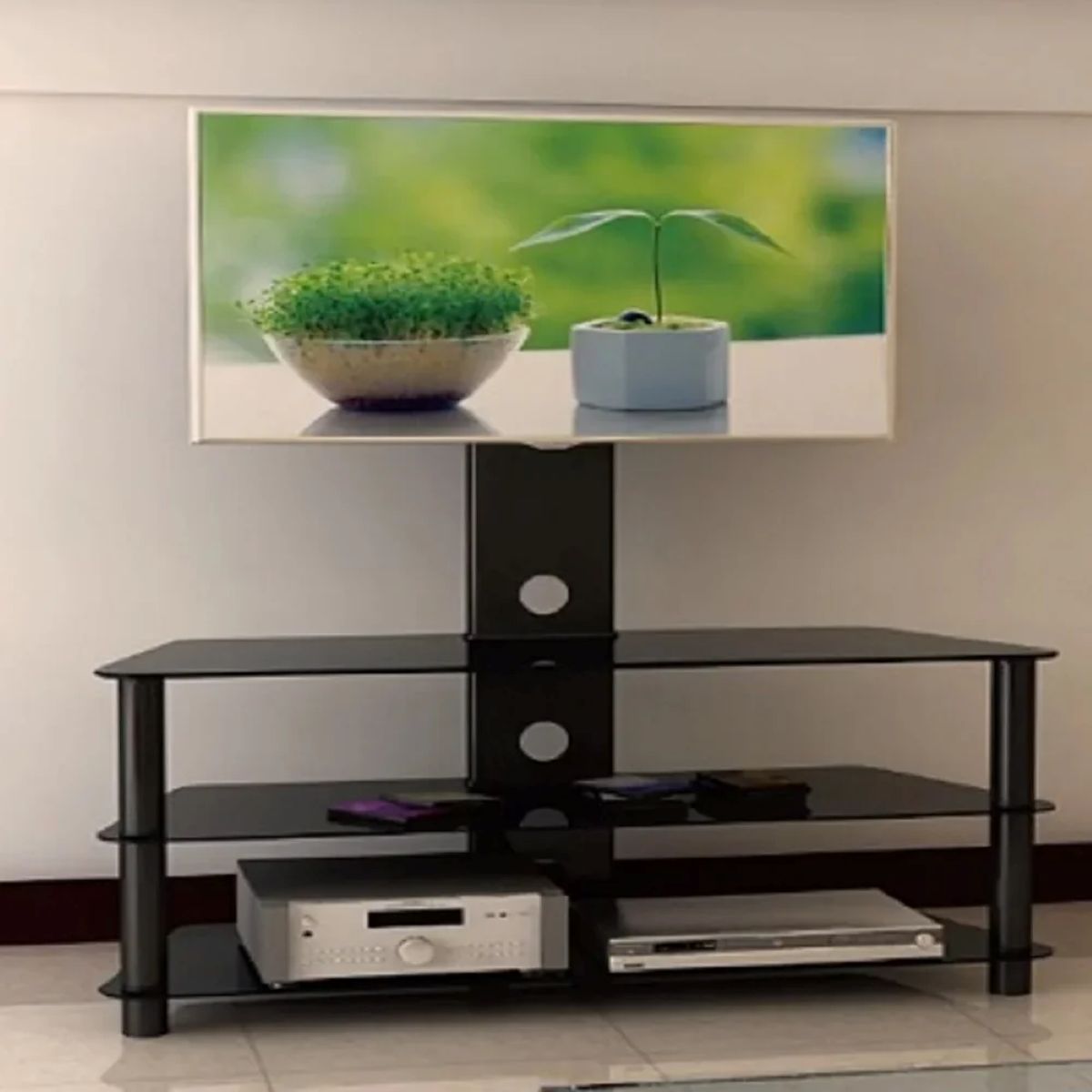 Floor Stands, Floor, Stands, Floor Stands in uae, Floor Stands in dubai, Best Floor Stands, 3-Tier Trapezoid Glass Media Console With Swivel TV Mount Bracket (Small)