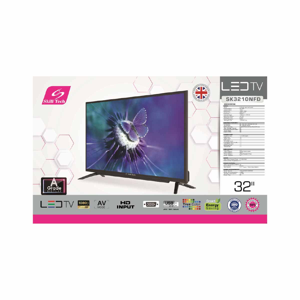 The SK3210NFD Skill Tech 32-Inch Normal TV features a high-quality A-grade open cell panel with Full HD 1920x1080 resolution, delivering sharp visuals and vivid colors. With a wide 176° viewing angle and a 3000:1 contrast ratio, it ensures an immersive viewing experience. Equipped with multi-system compatibility, 99-channel storage, and multiple sound and picture modes, this TV is perfect for everyday entertainment with durability up to 30,000 hours.
